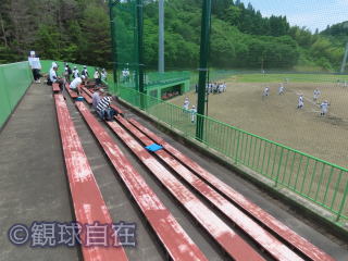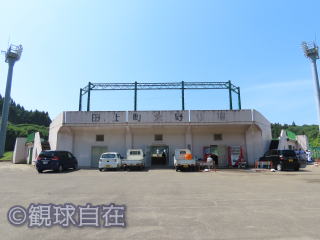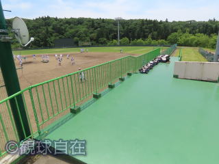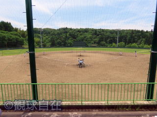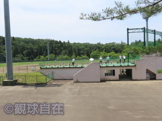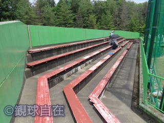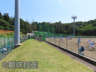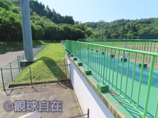 ネット裏から。 ネット裏メインスタンド席。 ネット裏席の両サイドは立ち見席的なスペースになっているのが特徴。 外野席。 センターから。 トイレは球場正面の前に。 自販機はある。 球場前の駐車は打球の危険が。 球場下への駐車がお勧め。