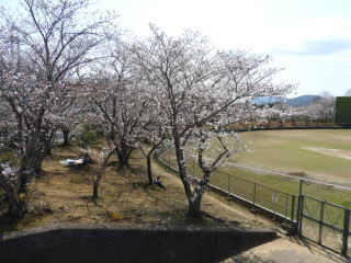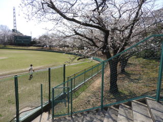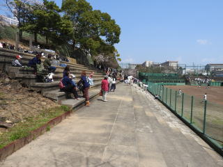 全てコンクリート席。また、外野席には桜の木が並び、もう2〜3日後なら満開だった。