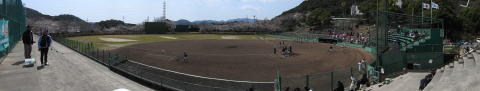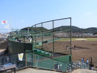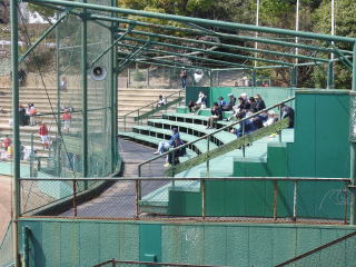 | 金網のバックネット、椅子無しのオールコンクリート席と、“昔の”球場感満載。 | 照明設備は無い。 |