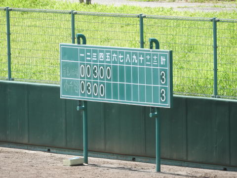 | 外観的なものは無い。 | スコアボードは一塁側ベンチ脇に、この黒板があるだけ。 |