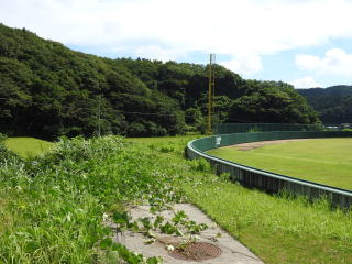 | 座席無し、スコアボード無し、ほぼほぼ草野球場。 | 照明設備無し。 |