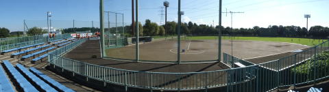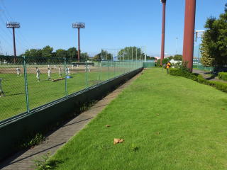 | 砂沼の畔にある、小さな野球場。 | 小さい球場ですが、何気に照明塔もあります。 |