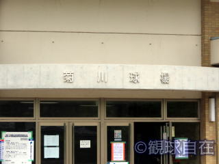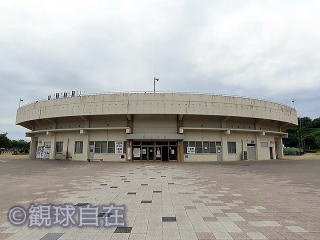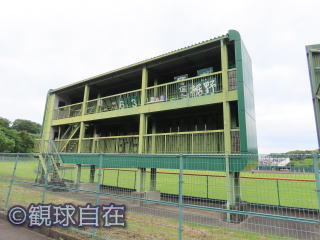 | 外観(2025年撮影)。 | 金網のバックネットは支柱も邪魔で観づらい |