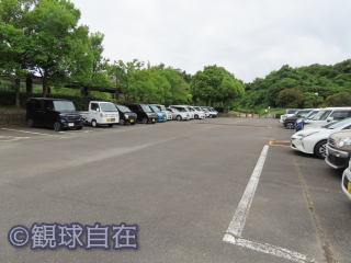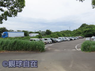| 球場前方の駐車場(写真左)の他、外野後方の東名高速脇(写真右)にも駐車場がある。 | |