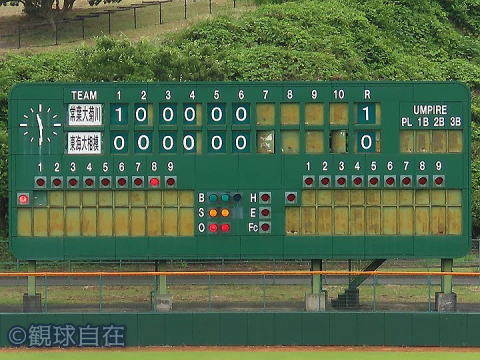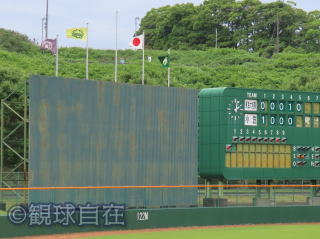 | 掲揚台はバックスクリーンにあるタイプ。 | |